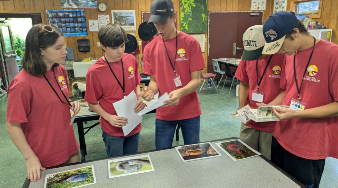The Envirothon is a fun and exciting way for high school students in grades 9-12 to learn about the natural world around us. Envirothon teams are made up of 5 students who work together to study Maryland’s natural resources over the course of the school year. All topics are very hands-on and include practical skills and the trainings taught by experts in each field.